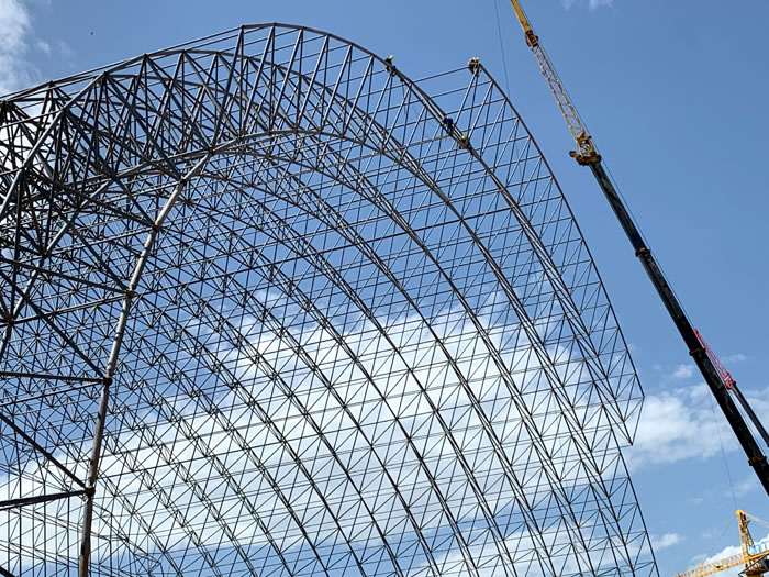 (2)网架加工前应对现场尺寸进行复测,确认无误后方可进行加工、安装;网架制作、运输、安装应遵守《空间网格结构技术规程》JGJ7-2010、《钢网架辽源螺栓球节点》JG/T 10-2009、《钢网架辽源螺栓球节点用高强度螺栓》 GB/T 16939-2016、《辽源钢结构辽源工程辽源施工规范》 GB50755-2012、《辽源钢结构辽源工程施工质量验收标准》 GB50205-2020。
